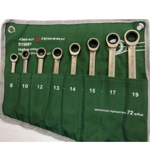Набор ключей рожково-накидных с трещоткой 8-19мм. (8пр.) ДЕЛО ТЕХНИКИ (515081)